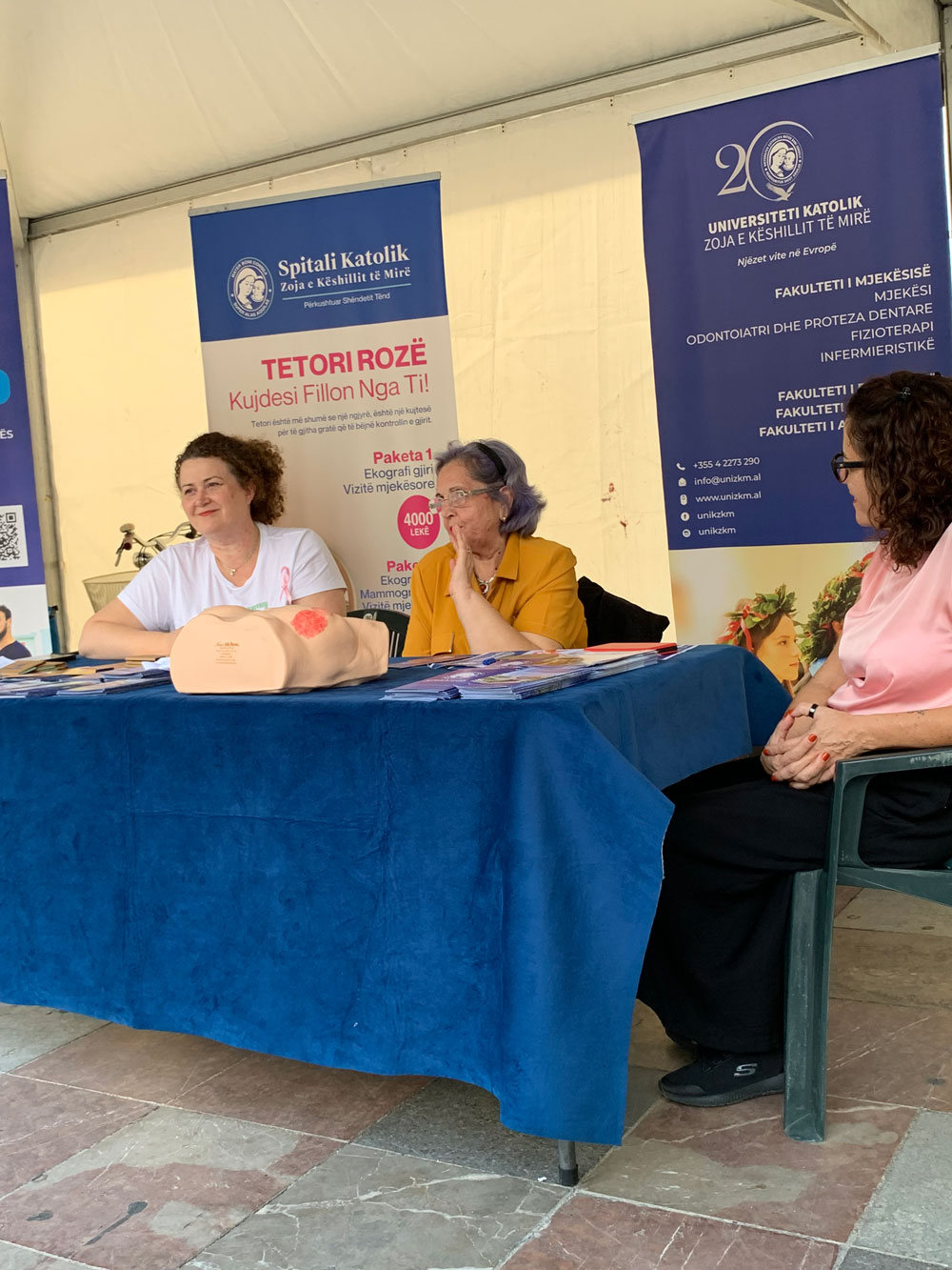 Në kuadër të Aktiviteteve për Tetorin Rozë, në Sheshin Skënderbej Spitali Katolik Zoja e Këshillit të Mirë dhe Universiteti Zoja e Këshillit të Mirë mirëpritën në stendën e tyre miq e mikesha duke sjellë në